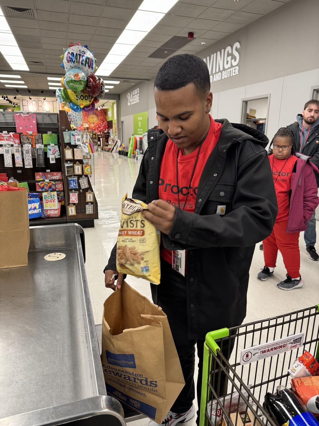 CTE Students are seeing a trip to the grocery store through a different lens after going to Price Chopper for something more than bread and milk. The group gained hands-on exposure to the day-to-day operations of each department, including grocery, produce, bakery and customer service. The visit focused on building practical workplace skills and increasing awareness of inclusive employment opportunities within a retail setting. Store staff demonstrated essential job tasks such as properly stacking shelves, organizing merchandise and bagging groceries, while explaining expectations around teamwork, communication and customer interaction. This experience provided students with valuable insight into real-world job responsibilities and helped build confidence, independence and readiness for future employment.