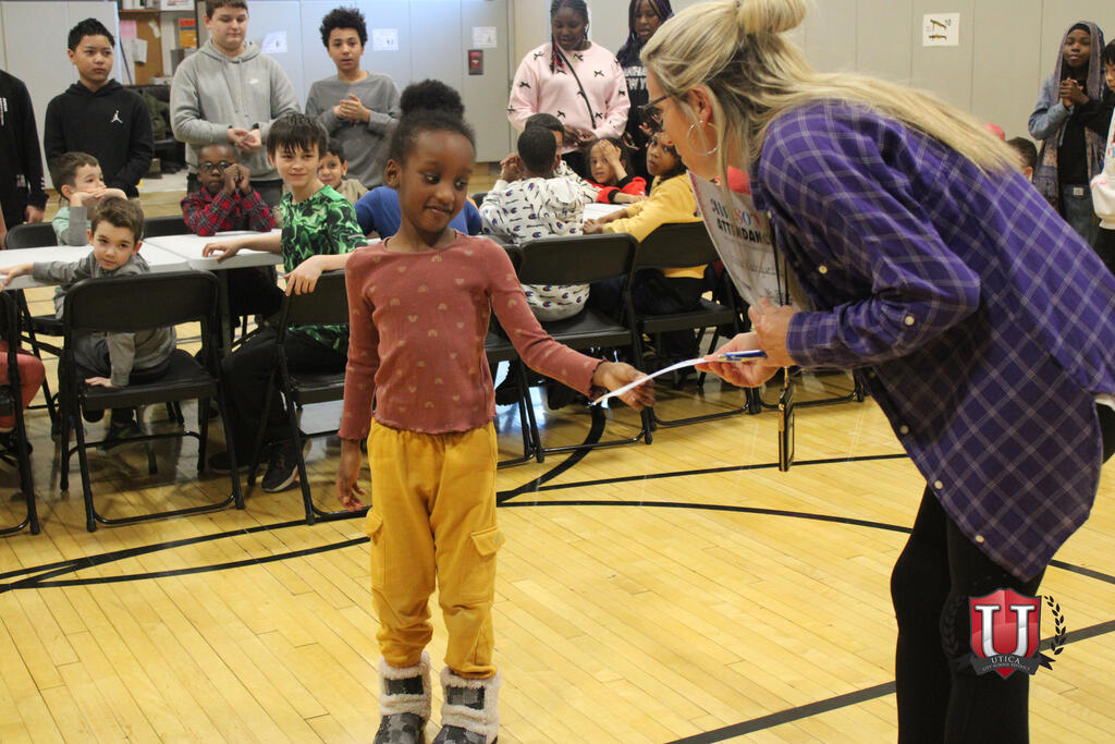 Бити у школи сваки дан је веома важан и ученици првог разреда основне школе Јефферсон су напорно радили да побољшају своје свакодневно присуство. Сваког месеца се одржава посебна скупштина којом се прослављају они прваци који су побољшали похађање наставе од вртића. Честитамо нашим првацима и њиховим родитељима што су школа учинили приоритетом. И велико хвала госпођи Симон и њеним ученицима шестог разреда што су били домаћини скупштине у част њих. Наставите са добрим навикама!